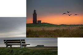 Beide Fotos wurden im Halligkalender 2015 veröffentlicht. Ein Foto (Leuchtturm) ist für Monat September und anderes (Ruhebank) für November betitelt. Hier können Sie das Ansichtsblatt.pdf (Auszug aus dem "Halligkalender 2015") einsehen.